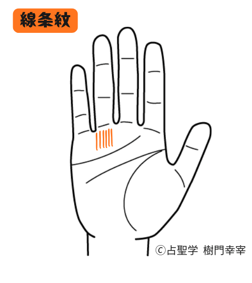 ツキのピークに合わせて濃くなることが多く、祖父母や父母の忍耐の上に、まじめに生きたことによって現れる“徳”のある手相です。