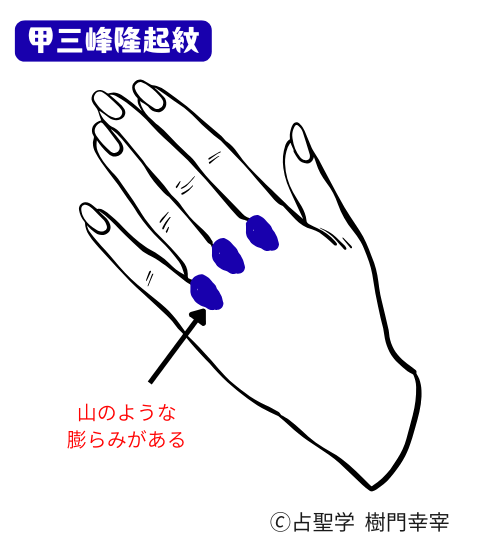 手の甲側で、指の付け根が三つとも山のように盛り上がる相です。