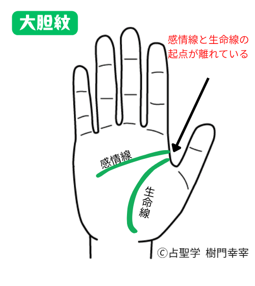 生命線と頭脳線の起点が3ミリほど離れている相です。